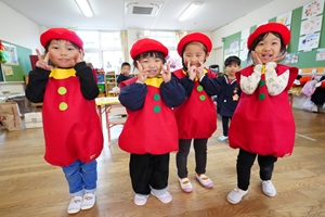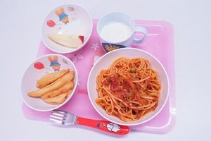 お遊戯会の衣装を着てみました。 お遊戯会のリハーサルが近づいてきました。衣装をつけて練習をしてみました。とても素敵ですね。早く本番が見たいです。 給食はミートスパゲッティでした。フライドポテトもついていました。とてもおいしかったです。リンゴも甘かったです。
