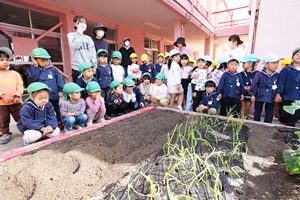 畑にタマネギを植えました。ダイコンとトウモロコシが少しずつ大きくなってきています。ブロッコリーは虫にだいぶ食べられてしまいました。残念!