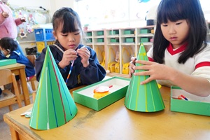 体育指導がありました。 クリスマス会の準備をしています。きれいな模様の飾りができました。クリスマスが楽しみです。 体育指導がありました。跳び箱をしました。低い段から高い段まで挑戦しました。高い段は少し難しかったですね。 給食は厚揚げと豚肉のみそ煮でした。寒くなると温かいものがおいしいですね。