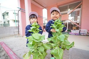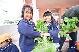 畑の白菜も大きくなったので収穫しました。お店のように,まるくなりませんでしたがりっぱな葉っぱはできました。給食でスープに入れてもらいます。