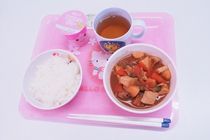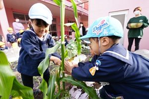 柿とトウモロコシを収穫しました。 柿を収穫しました例年,30個以上はとれるのが,今年は5個でした。こんな不作は初めてです。山でも柿や栗が少なくて,クマさんが里に出て来てしまうのかもしれませんね。 トウモロコシの2回目の収穫です。普通は夏に1回しかとれないのが,今年は2回とれました。気候が変になっているようですね。サラダに入れて給食で食べます。 給食は豚肉と厚揚げのみそ煮です。朝から味噌の良い匂いがしていました。温かくておいしいです。
