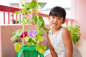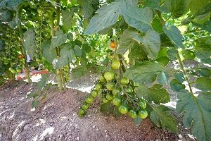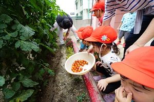 トマトがいっぱい実をつけています。毎日,1個か2個ずつしかとれません。いっぱい赤くなったら,みんなで食べましょう。