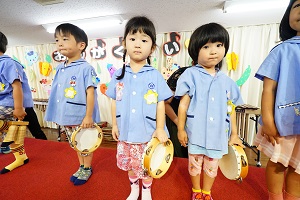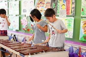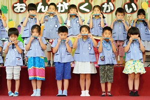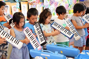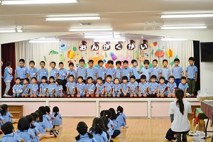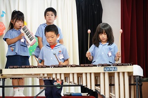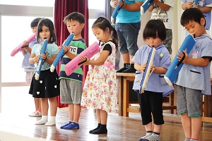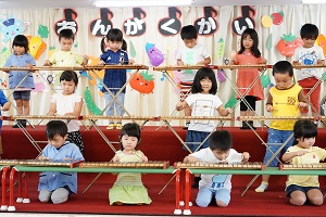 明日はいよいよ音楽会です。最後の練習を舞台や教室でしました。午後からは年長組さんが,会場の準備をしてくれました。本番では,今までのように元気に,楽しく演奏してください。天気が良くなると良いですね。
