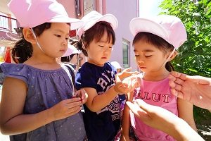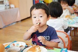 今日の給食は,幼稚園でとれたキュウリを食べました。とれたてなので新鮮でシャキシャキでした。いっぱい食べたくなりましたね。