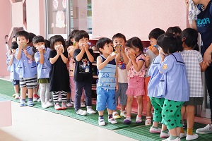 午後からはとても暑くなりましたが,遊戯室はエアコンがかかっていて涼しかったです。みんなの練習に取り組む姿も,真剣さが増してきました。木曜日の予行練習が楽しみです。
