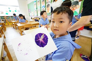 朝顔が毎日いっぱい咲くので,押し花を作りました。きれいな色がでましたね。