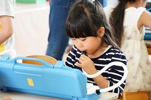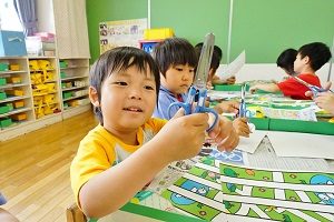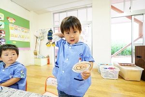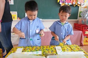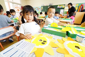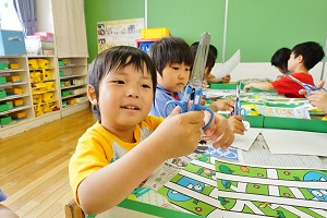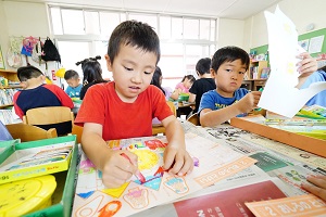 年中組さんも製作をしました。はさみをじょうずに使うことができるようにするために,いっぱい切る製作でした。正しい持ち方が基本ですね。