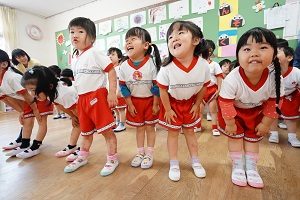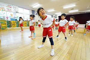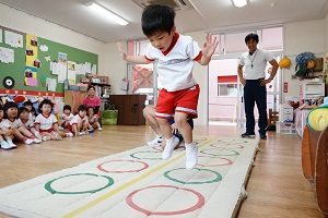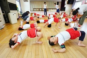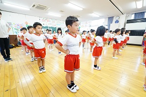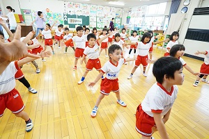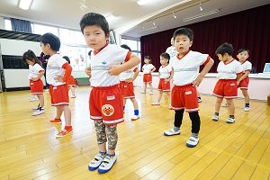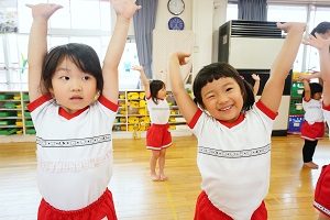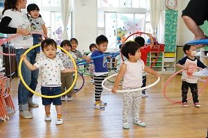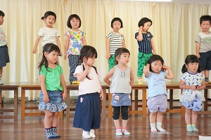 年少組,梅組さんはリトミックがありました。リズムに合わせて楽しく遊びました。年中組になるとダンスがありますよ。
