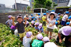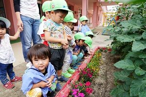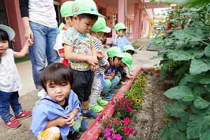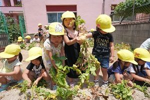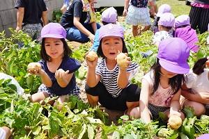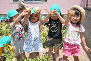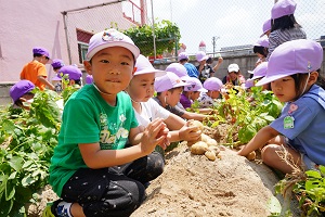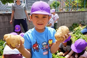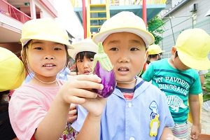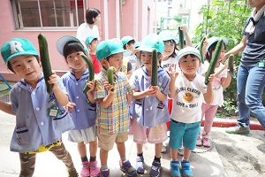 幼稚園の野菜たちは順調に成長しています。キュウリは毎日2,3本は収穫できます。トマトも大きくなってきました。ジャガイモも,来週には収穫できそうです。