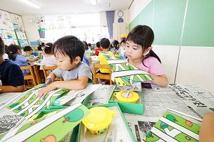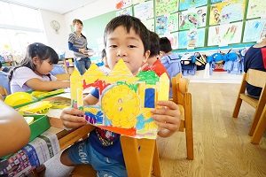 年少組,年長組さんは時計の製作をしました。6月には時の記念日があるので,それまでに完成させます。年少組さんはライオンの様な時計,年長組さんは窓から動物がでるからくり時計です。時計の読み方も勉強しましょうね。