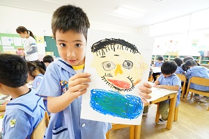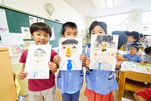 年長組さんは,お父さんの絵をかきました。みんな優しそうなお父さんですね。ひげがりっぱです。