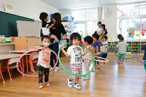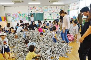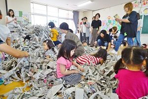 ちびっこクラスに大勢の方が参加していただき,ありがとうございました。今回は,「新聞で遊ぼう!」でした。新聞の山にもぐったり,上から降らしたりして遊びました。次回は給食試食会です。今年のメニューは中華料理です。期待していてください。