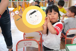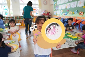 年少組さんは,カタツムリにお父さんの顔をかきました。父の日にプレゼントする予定です。