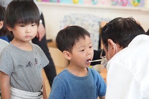 今日は,朝から歯科検診がありました。みんな不安そうな表情ですが,大きな口を開けることができましたね。歯みがきをきちんとしているので虫歯は少なかったです。