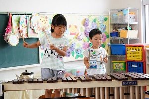 音楽会の練習も毎日がんばっています。大木琴もだんだん慣れてきました。優しいいい音がします。