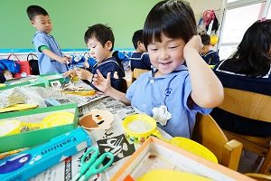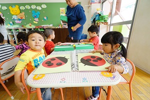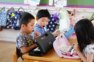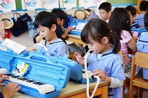 年長組さんはメロディオンをがんばっています。音楽会が来月にあるので,少しずつ練習しています。みんなでそろったきれいな演奏を聞かせてください。