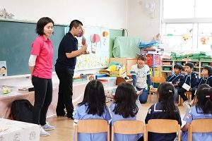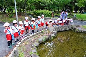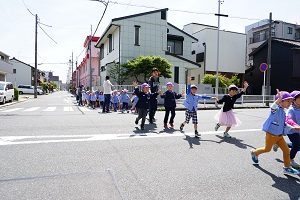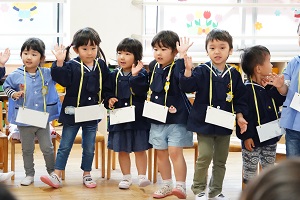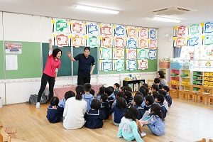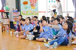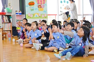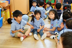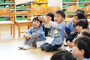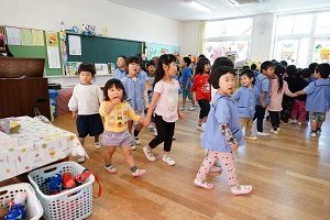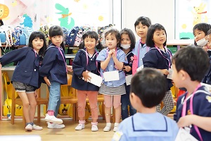 年長組さんと年少組さんで合同でリトミックをしました。年長組さんがじょうずに年少組さんをリードしてあげていましたね。遠足でも一緒に仲良く遊びましょう。