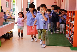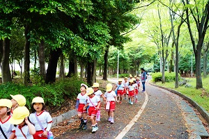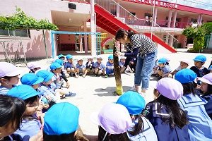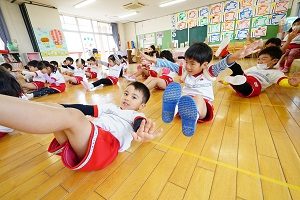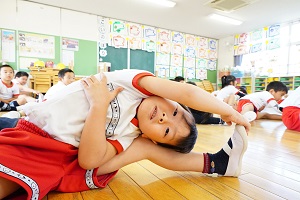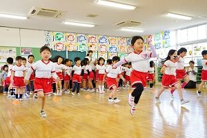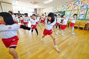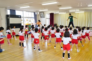 今日は,年中組,年長組さんでダンスレッスンがありました。準備運動をして,体をほぐしてから,曲に合わせてステップを練習しました。久しぶりのダンスレッスンでしたが,前にならったことをよく覚えていましたね。風も涼しくて,気持ちの良く踊ることができました。