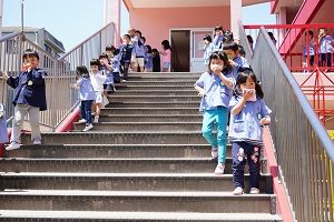 今日は,避難訓練がありました。まず始めに,津波を想定して,避難所まで逃げる訓練をしました。次に,火事になったことを想定した訓練がありました。いつでも正しい行動がとれるように練習しておくことが大切です。