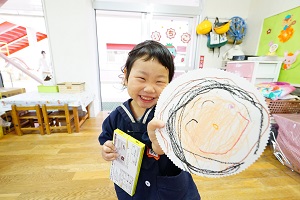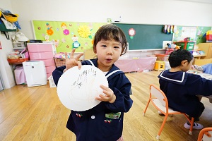 年少組さんは,紙皿にお母さんの絵をかきました。にこにこ顔の優しそうなお母さんの絵がかけましたね。