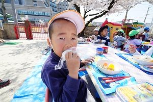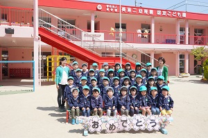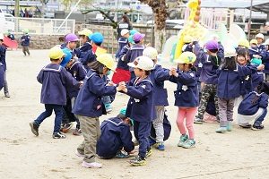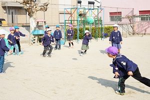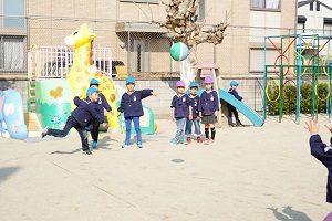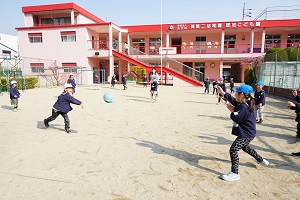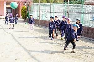 明日はいよいよ卒園式です。年長組さんは,幼稚園での最後のドッヂボールをしました。ボールを投げることも,キャッチすることもとてもじょうずになりました。