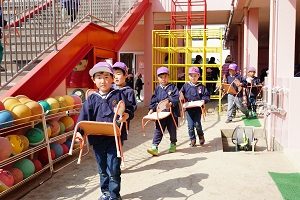 11時降園なので,あっという間ですが,友だちと楽しく遊びました。卒園した年長組さんとも一緒に遊ぶことができて良かったですね。