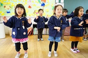 今日も雨だったので,教室で今までに覚えた遊戯をしました。懐かしい曲に合わせて楽しく踊りました。