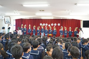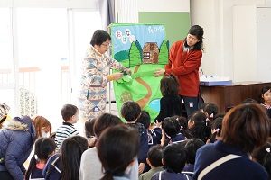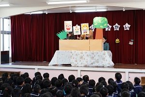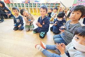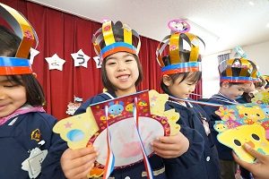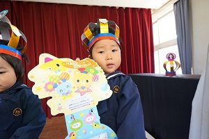 今日は,2月生まれのお友だちの誕生会がありました。名前と何歳になったかを一人一人発表しました。その後,先生からプレゼントをもらいました。先生たちのペープサートも見ました。楽しかったですね。