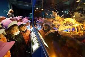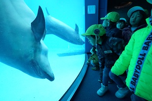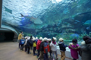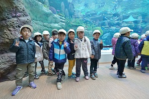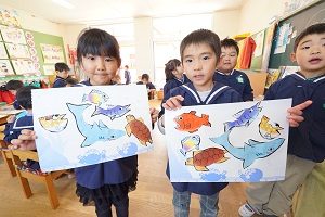 年中組さんは,昨日の水族館のことを思い出しながら,水族館の製作をしました。カメやサメもいましたね。