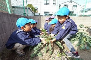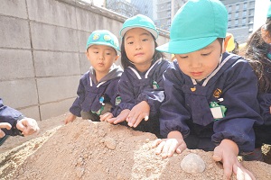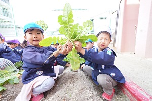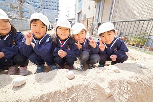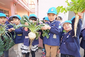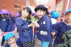 今日はジャガイモの種芋を植えました。毎年,5月の保育参観の時に収穫をしています。今年は,ダイコンが不作だったので,今度こそ大きくなって欲しいです。