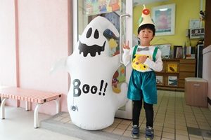 10月の誕生会をしました。名前と何歳になったかを一人ずつ発表しました。先生たちがハロウィーンのペープサートを見せてくれました。