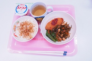給食は豚汁でした。寒かったのでとてもおいしかったです。ちくわの揚げたものも塩気が効いていておいしかったです。