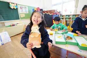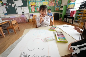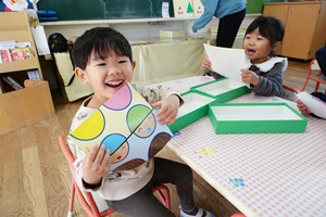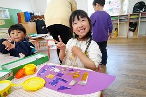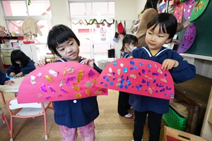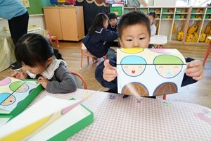 年少組さんは笑顔の製作をしました。ニコニコの笑顔ができました。