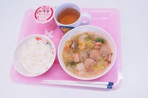 給食は肉団子と春雨のスープでした。温かくてとてもおいしかったです。
