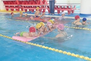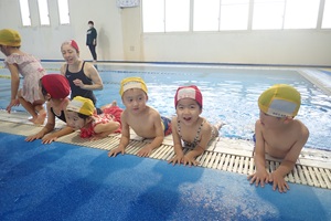 年長組,年中組さんはプール指導がありました。外は寒くても温水プールはぽかぽかでした。