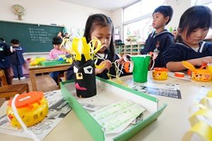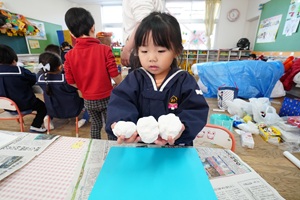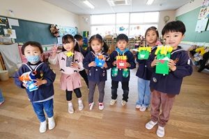 節分の鬼さんや,豆まきの豆を入れる容器を作りました。去年は元気な鬼さんが幼稚園にやってきましたが,今年はどうなるでしょうね。