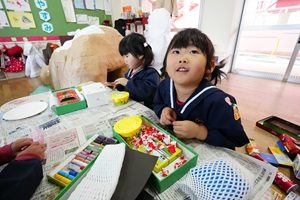 年少組さんは紙粘土や廃材を利用して,食べ物の製作をしています。パスタやハロハロを作っているお友だちもいました。おいしくできると良いですね。