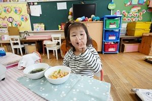 誕生会の日の給食は唐揚げとプリンです。みんなの大好きなメニューですね。おかわりをたくさんしていました。