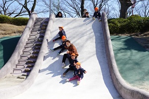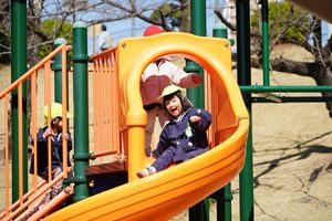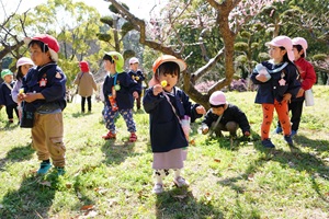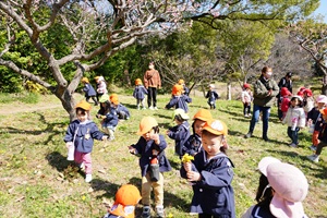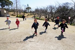 うめ組,年少組さんがお別れ遠足に行きました。 うめ組,年少組さんがお別れ遠足で,大池公園に行きました。梅はもう散っていましたが,タンポポがたくさん咲いていました。芝生で走ったり,動物を見たり,遊具で遊んだりして,とても楽しかったです。 給食は麻婆丼でした。甘口ですが豆腐と挽肉がとてもおいしかったです。