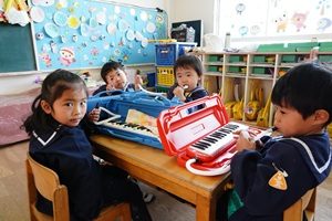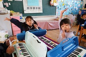 年中組さんはメロディオンを練習しています。今の曲はベートーベンの交響曲第9番です。少しずつ演奏できるようになってきました。