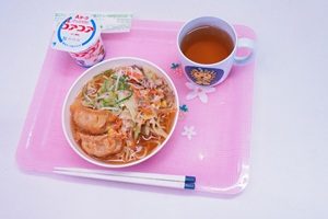 給食はスタミナラーメンでした。今回は揚げ餃子がのっています。お肉や野菜もたくさん入っていました。