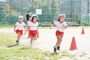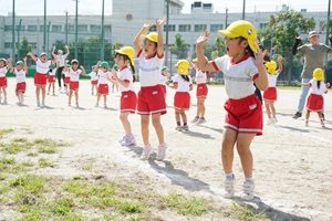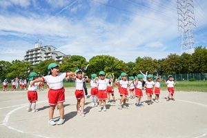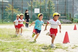 今日はとても良い天気になりましたね。青空の下でいっぱい練習しました。年中組さんはお遊戯とかけっこをしました。本番みたいに入場,退場もしました。とても上手でした。