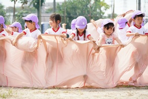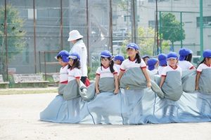 年長組さんもグランドでバルーンの練習をしました。外でやったのは初めてだったので,なかなかうまくできませんでした。まだまだ時間があるので,少しずつやっていきましょう。