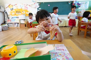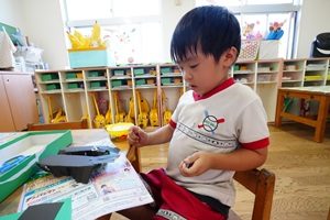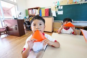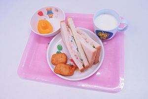 ハロウィーンの飾りを作りました。 年中組さんはハロウィーンの飾りなどを作りました。フライドポトを作ったり,カブトムシやクワガタムシを作ったり,カボチャを作ったりもしました。 グランドでは競技やバルーンの練習をしました。上手になりましたね。来週はいよいよ本番です。 給食はサンドイッチでした。ポテトサラダとハム,キュウリが入っています。ナゲットもおいしかったです。