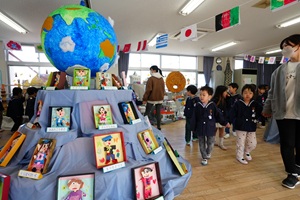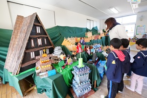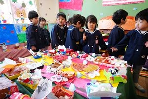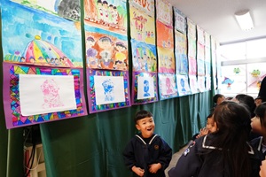 明日は,いよいよ作品展です。立派な作品が完成しました。今日はみんなで,作品の見学をしました。自分の作品やお友だちの作品を見て回りました。どれも力作ばかりでした。