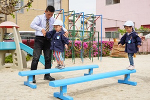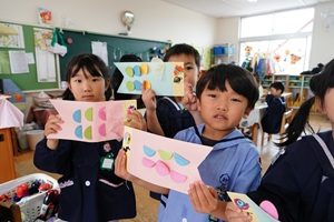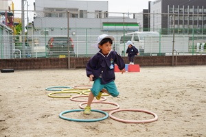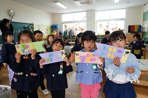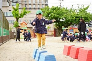 年中組さんが障害物競走をしました。 今日は,年中組さんが障害物競走をしました。年長組さんよりは簡単なコースです。平均台が最大の難関でした。勝っても負けても楽しく遊びました。 年中組さんの鯉のぼりができました。うろこがそれぞれ工夫していて素晴らしいです。 給食はちくわ天うどんでした。卵焼きものっています。おだしのきいた汁がおいしかったです。