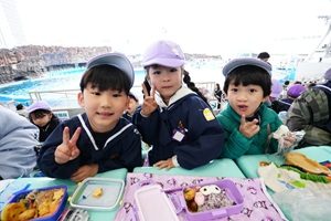 年長組さんが名古屋港水族館にお別れ遠足で出かけました。 年長組さんがお別れ遠足で,名古屋港水族館に行きました。シャチや海の生き物を見たり,イルカショーを見たりしました。お昼はお弁当を食べました。思い出に残る楽しい一日でした。 給食は豚肉と厚揚げのみそ煮でした。甘くて温かくておいしかったです。いちごのヨーグルトもおいしかったです。