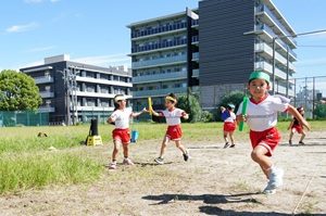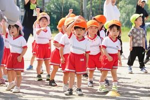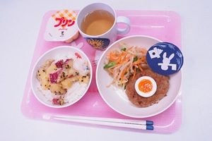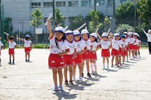 明日は予行練習です。 昨日までの雨も上がって,今日は良い天気になりました。明日はいよいよ予行練習です。開会式から年長組さんの遊戯までたくさん練習しました。まだうまくいかないとこるもありましたが,元気にがんばることができました。 給食はお月見スペシャルでした。サツマイモのご飯にお月見ハンバーグ,野菜炒めにプリンのデザートがついていました。ウサギさんのかわいい絵ものっていておいしかったですね。